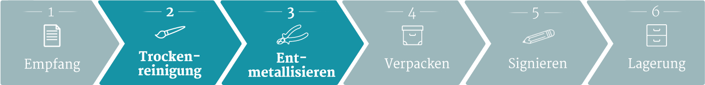Wie Sie in dem Video in Aufgabe 1 gesehen haben, hat die Restauratorin während der Bearbeitung der Akte umgeschlagene Ecken und welliges Papier geglättet und einige Risse gesichert. In dieser Aufgabe lernen Sie mehr über das Glätten und das Anbringen von so genannten Sicherungsriegeln.